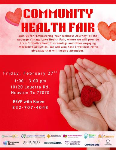 Join us at the Auberge at Vintage Lake as we provide health screenings and other interactive activities. We will be hosting a wellness raffle giveaway for attendees.