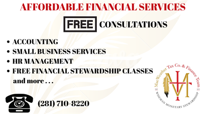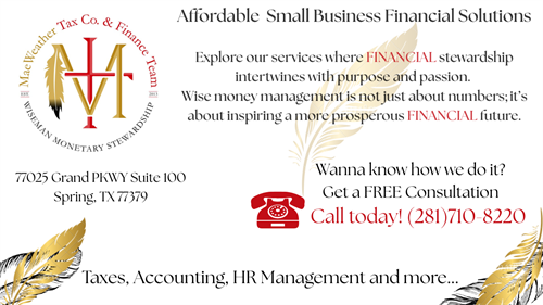 Welcome to MaeWeather Tax Co. & Finance Team, where we believe that financial freedom is not just a destination but a profound calling. Grounded in faith and driven by a mission to uplift our community, we are more than a tax and accounting firm; we are your dedicated partner on the journey toward financial wellness.